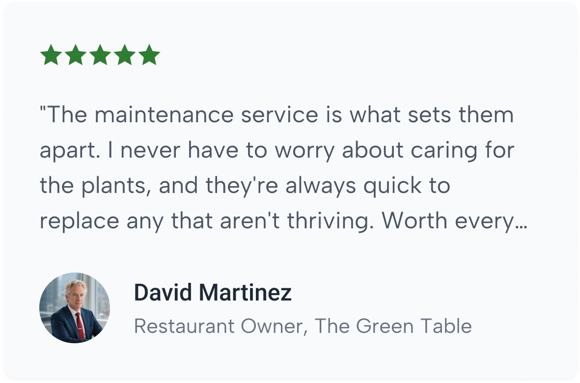 We offer flexible plant rental plans. You can choose the appropriate plant combination based on the size of your space and your needs, and pay the rent monthly without having to invest a large amount of money at one time. We will visit you regularly to replace the plants with new ones to ensure that your space always looks beautiful.